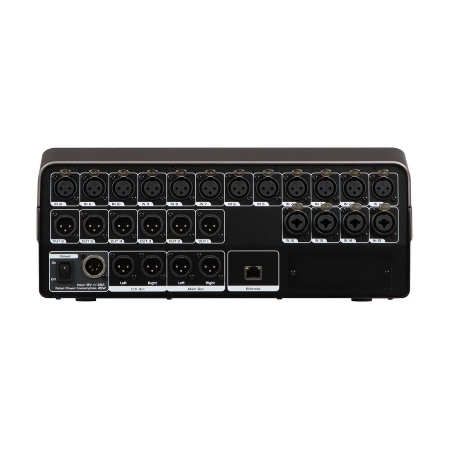 – 16 entradas analógicas XLR (incluye 4 entradas combo XLR+6.3mm) con control de ganancia digital